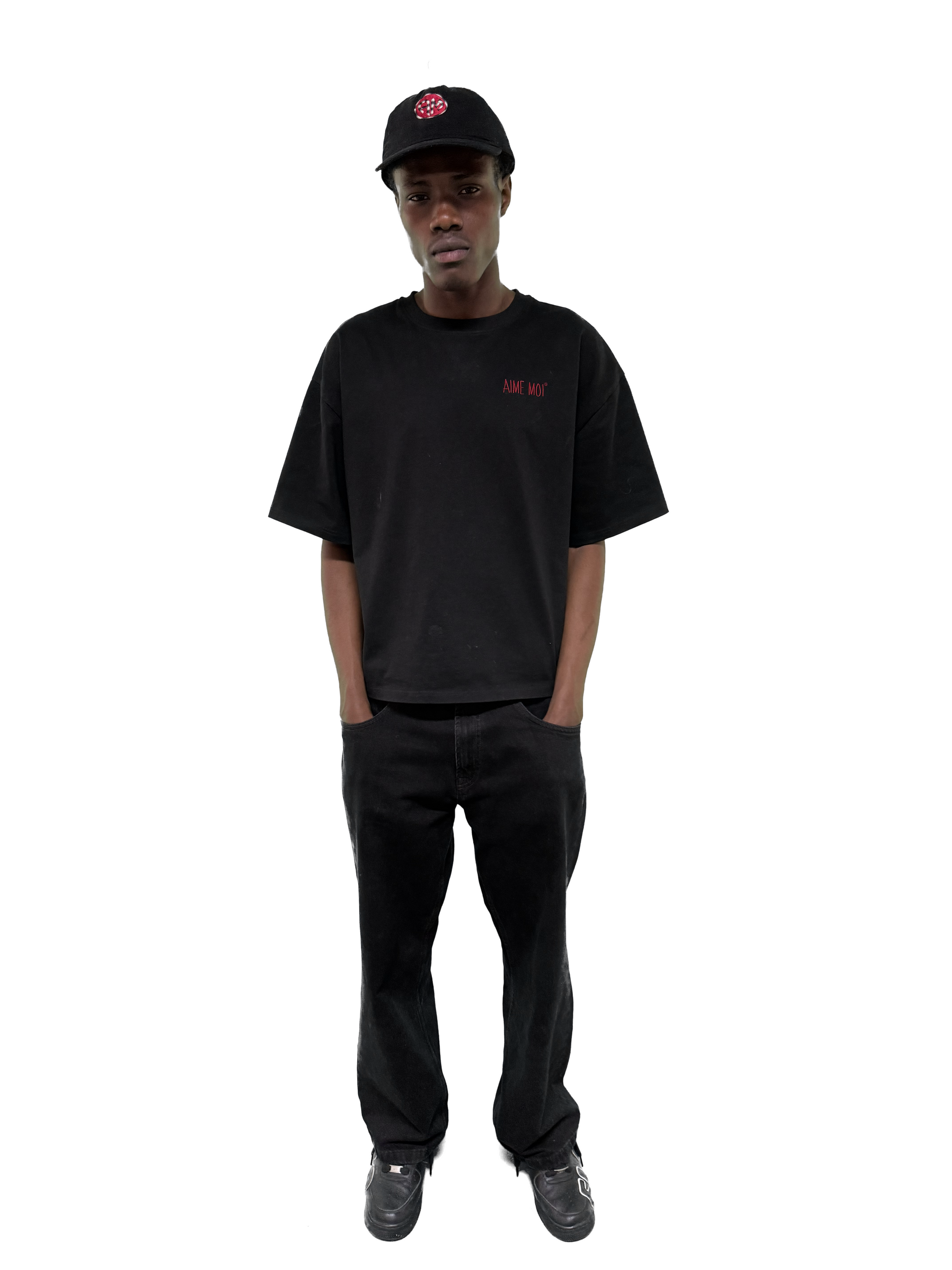 The Hotline Tee taps into 90s nostalgia with a moody, pop-art inspired graphic and the iconic '1-800-AIME-MOI' hotline. Crafted in a heavyweight black cotton, it's the perfect statement tee for lovers of emotional storytelling and bold, expressive design.